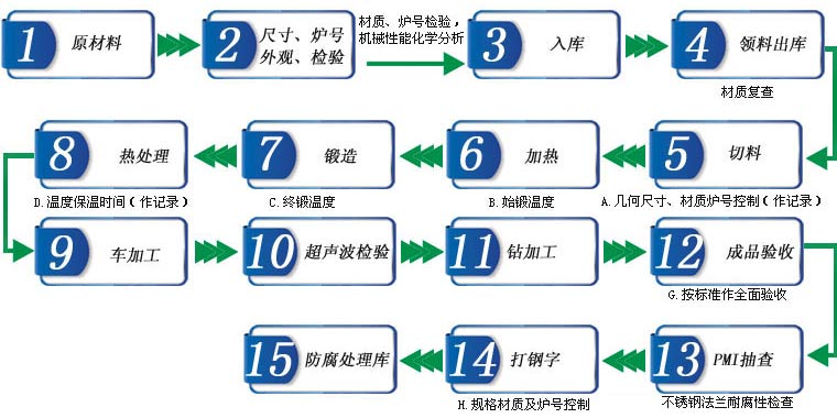 原材料采用中國境內(nèi)大型鋼鐵公司的優(yōu)質(zhì)鋼材,標準有ASTM A105、C22.8、C21、 Rst37.2、S235JRG2、P355NH、P265GH、1.0565、SS400、A350LF2 、 F304、F304L、F316、F316L、F316Ti、F321、F317L(UNS S31703)、A182 F51(UNS S31803)、A182 F53(UNS S32750)、1.4541、1.4571、1.4404、1.4401 、1.4462 、1.4410 、A182-F11、A182-F12、ASTM A694 F52、F60、F65、F70 etc等